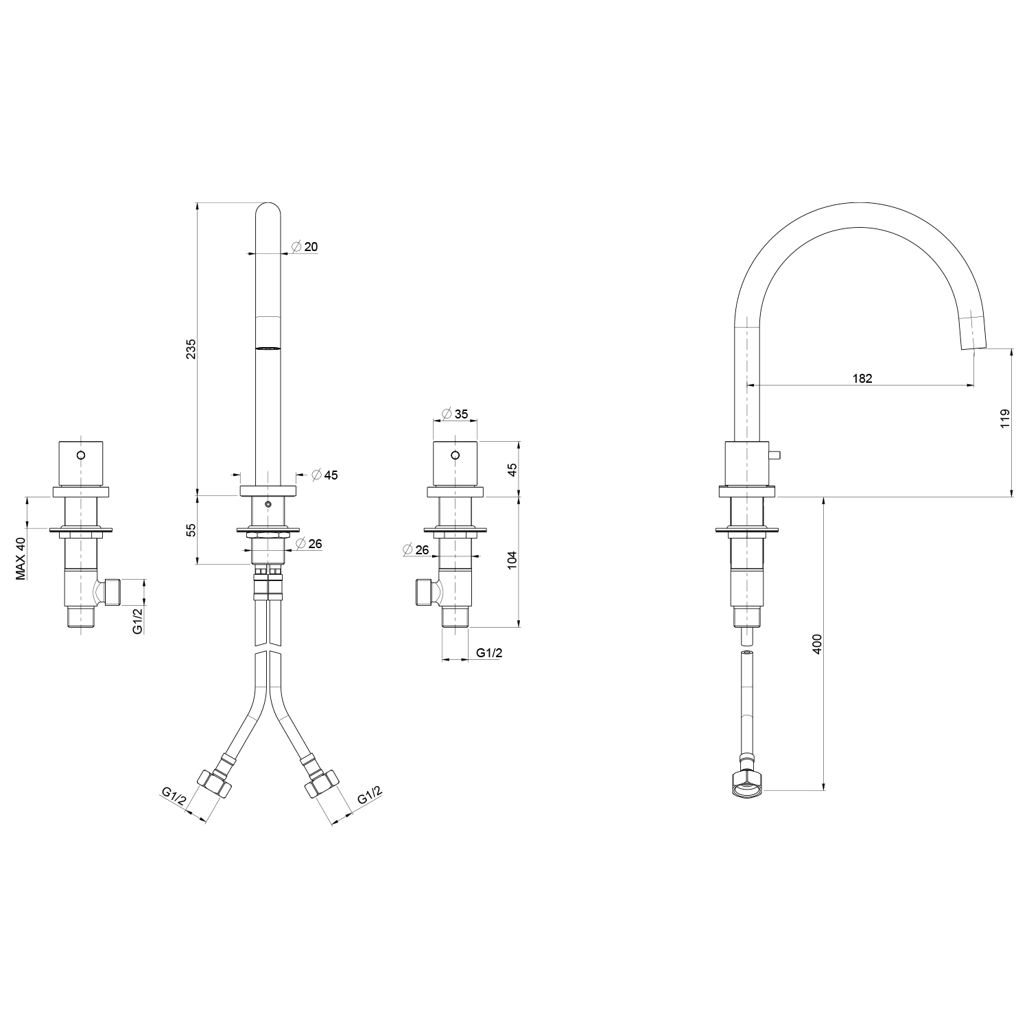 ULTRAMIX korpus fo 3-elementowej baterie umywalkoweh, złoto mat (1 szt.)