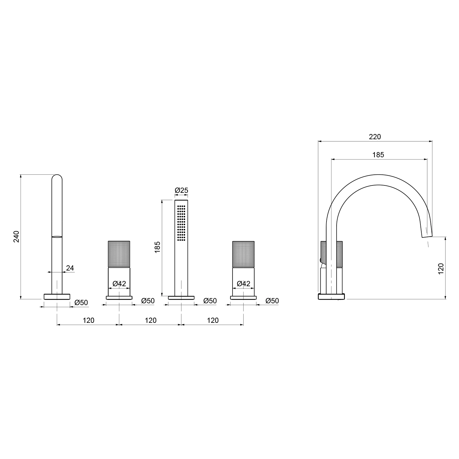 ULTRATAP 4-otworowa bateria wannowa na brzeg wanny, chrom