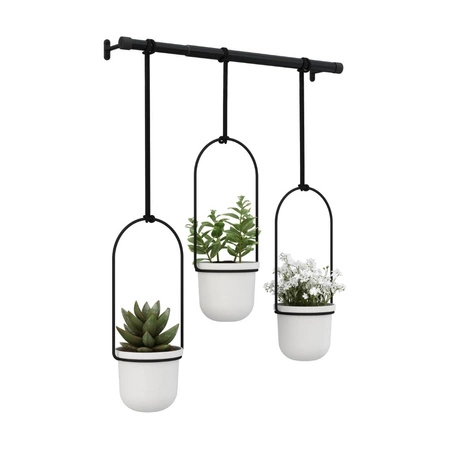 To zgrane trio stanie się ozdobą każdej kuchni. Produkt to zestaw składający się z trzech doniczek wiszących na relingu. Długość lin można regulować oraz przesuwać je na relingu. Maksymalny udźwig to 2,7 kilograma. Doniczki sprawdzą się jako miejsce na zioła i sukulenty. Doniczki Triflora wykonano z melaminy, zaś reling jest stalowy. Produkt jest objęty dwuletnią gwarancją.