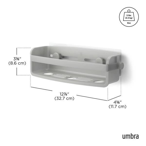 Dzięki sprytnemu schowkowi pomieści szampon, odżywkę, płyn do mycia ciała oraz maszynke do golenia.