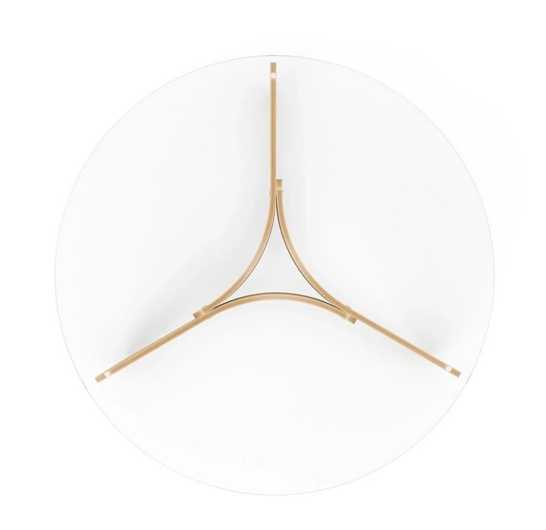 Blat z 10 mm hartowanego szkła ma polerowane krawędzie i zapewnia wyraźny widok na ciekawie wykonaną podstawę.