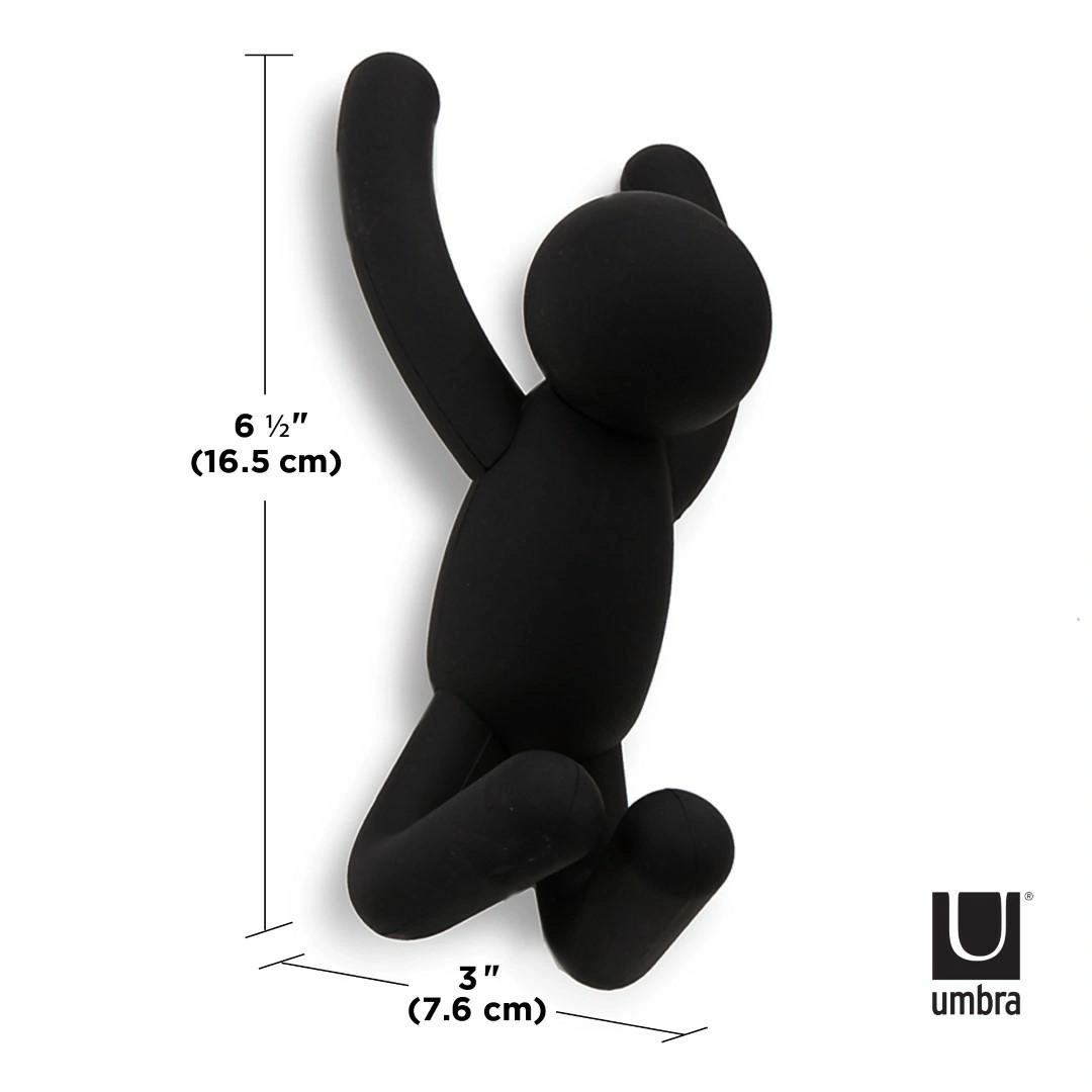UMBRA haczyk ścienny BUDDY koloru czarnego. Jest to zestaw trzech haczyków ściennych, przedstawiających postać Buddy`ego. Jeżeli nie są używane, mogą służyć jako świetna dekoracja, która z pewnością przykuje uwagę Twoich znajomych oraz rodziny. Świetnie nadadzą się do przedpokoju, ale też pokoju dla dzieci i młodzieży, zastępując tradycyjny wieszak. Spokojnie powiesimy na nim, torbę, plecak, czapkę etc. Pomogą nam utrzymać porządek i dodają jednocześnie zabawny akcent. Stylowy i solidny haczyk w wielu wariantach kolorystycznych. Wymiary: wys. 18 cm / szer. 7 cm / gł. 8 cm Waga netto: 0,4 kg.