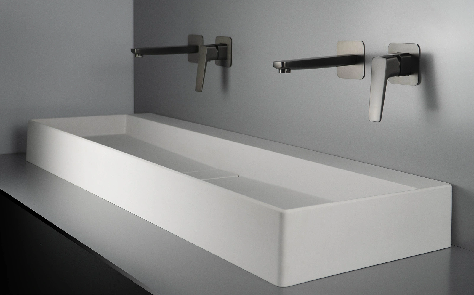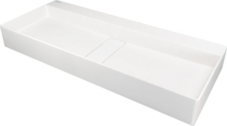 Jasny odcień umywalki Blur rozświetla wnętrze, wprowadzając do niego harmonię i świeżość. Wykonana z najwyższej jakości granitu, umywalka jest wyjątkowo trwała i odporna na uszkodzenia mechaniczne, wysokie temperatury oraz działanie wilgoci. Dzięki właściwościom antyseptycznym, które zapewniają jony srebra, jej powierzchnia pozostaje higieniczna przez cały czas użytkowania. Hydrofobowe wykończenie dodatkowo ułatwia utrzymanie czystości, odpychając cząsteczki wody i zapobiegając powstawaniu zacieków. Maskownica odpływu estetycznie ukrywa elementy instalacyjne, nadając umywalce nowoczesny i minimalistyczny charakter. Może być zaprojektowana zarówno z myślą o jednej baterii, idealnej dla indywidualnego użytkownika, jak i z dwiema bateriami, co pozwala na komfortowe korzystanie przez dwie osoby jednocześnie. Ze względu na technologię produkcji, odcień maskownicy może się nieznacznie różnić od koloru umywalki.