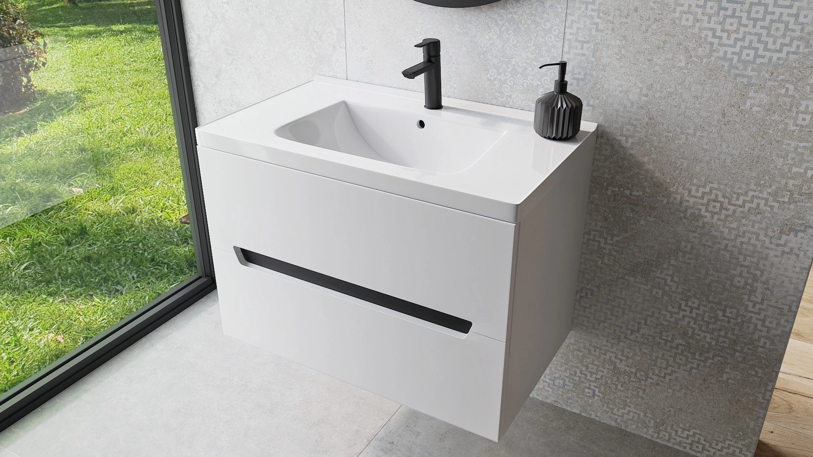 Montaż umywalki przeznaczonej do mebli łazienkowych pozwala ukryć elementy odpływowe, utrzymać nienaganny wygląd łazienki i zaoszczędzić miejsce. Do modelu KANSAS możesz wybrać szafkę łazienkową z gotowym otworem, dzięki czemu instalacja będzie prosta i szybka do wykonania.