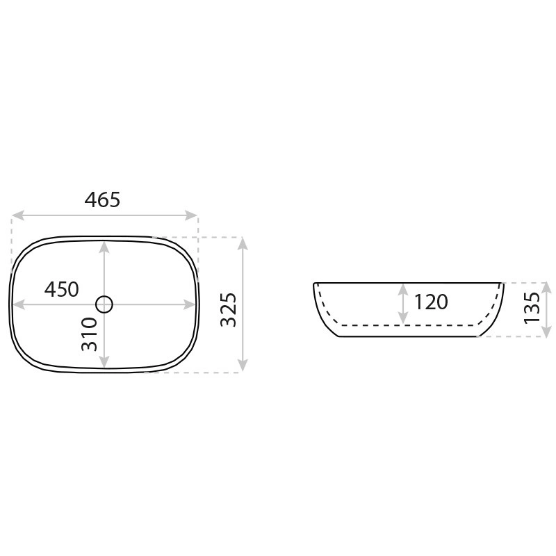 Wymiary w mm (dł x szer x wys):465x325x135:0:1, Kolor:Inny:5:0, Materiał :Ceramika:6:0, Przelew:Nie:16:0, Otwór na armaturę:Nie:17:0