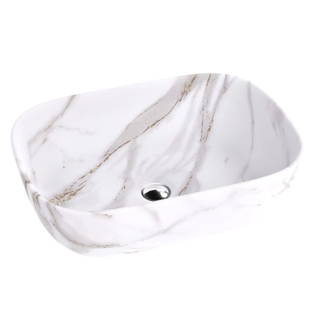 Umywalka nablatowa Elpis to propozycja dla osób, które chcą wprowadzić do swojej łazienki ponadczasowy styl i luksusowy wygląd. Wykonana w kolorze imitującym marmur, doskonale wpisuje się w nowoczesne i klasyczne aranżacje wnętrz. To idealne rozwiązanie dla tych, którzy cenią wyjątkowy design i naturalne inspiracje.
