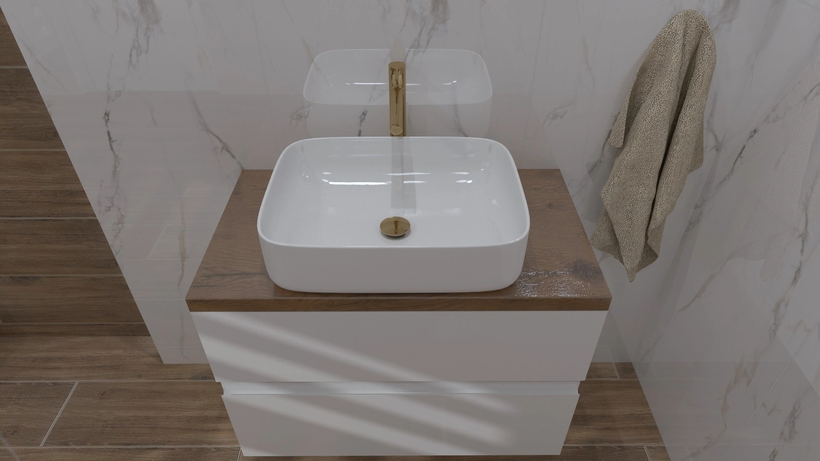 Umywalka GALERA to prostokątna bryła o półowalnym, cienkim rancie. Umywalka GALERA daje niezwykle przestronny efekt, dzięki białej barwie i harmonijnym kształcie. Model posiada dużą powierzchnię użytkową, a ergonomiczna wysokość zapewnia nie przedostawanie się wody na blat łazienkowy. GALERA jest odpowiednim wyborem do nowoczesnych i skandynawskich wnętrz. Pięknie współgra z drewnopodobnymi dodatkami, nawiązując do rustykalnego stylu.