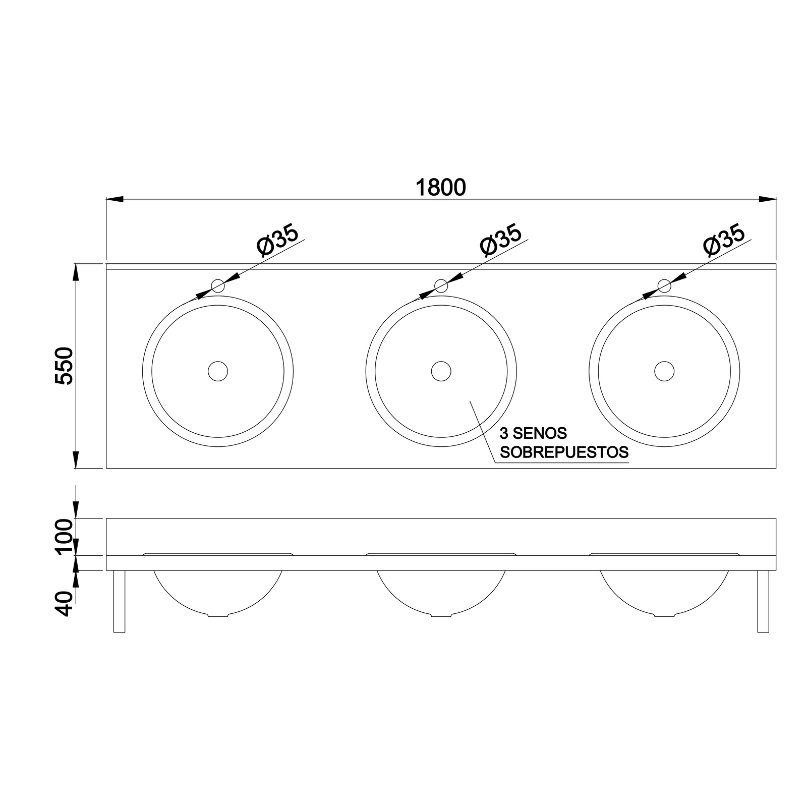 Umywalka potrójna z obudową 1800x254x550 mm, stal nierdzewna mat