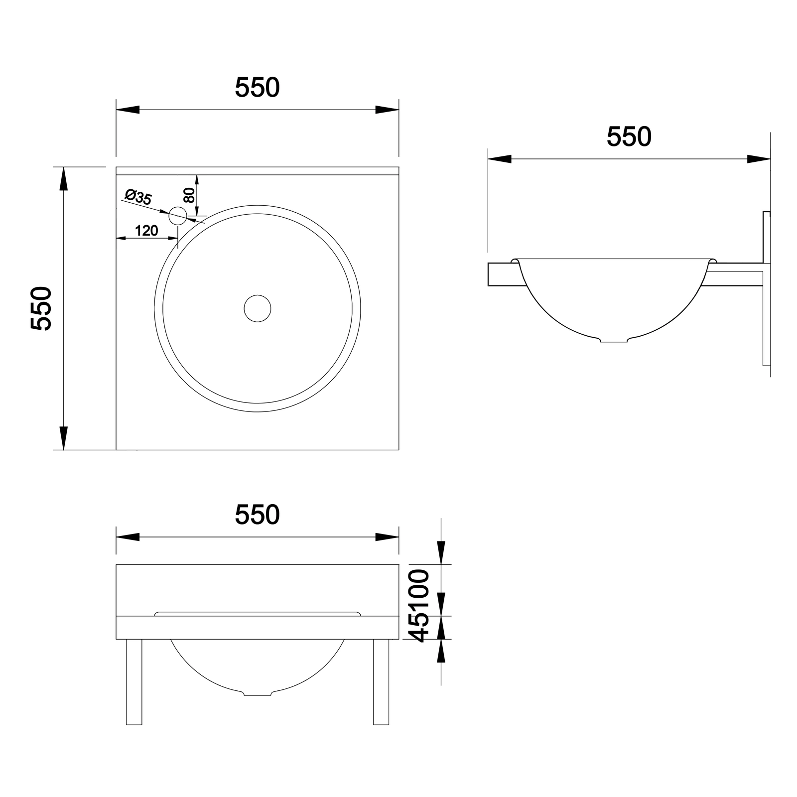 Umywalka z obudową 550x254x550 mm, stal nierdzewna mat
