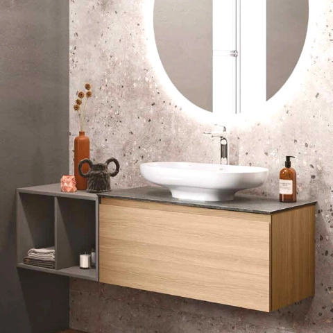 Zestaw DES Umywalka bez otworu & Szafka UNO Joy podumywalkowa podwieszana 100 SCANDINAVIAN OAK