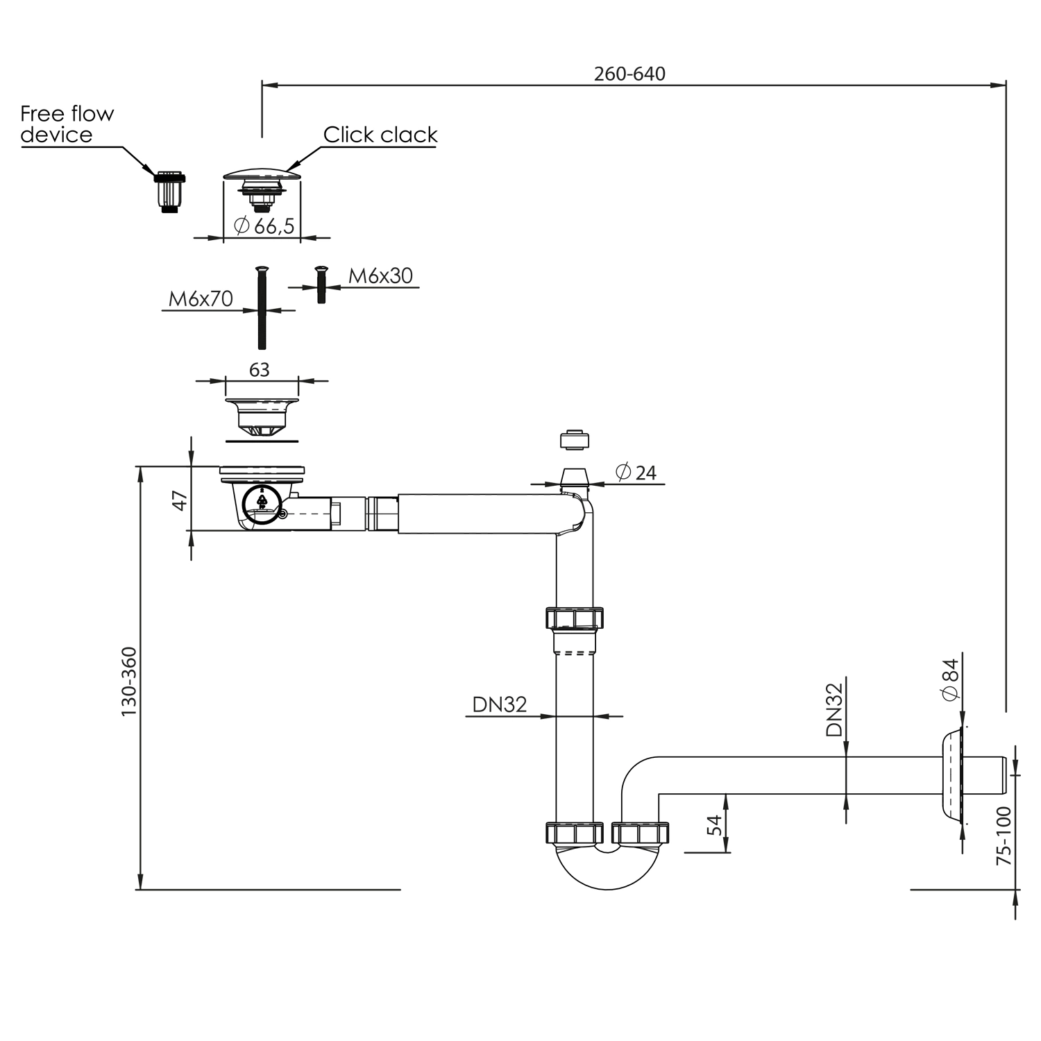 | Średnica odpływu | 32 mm |