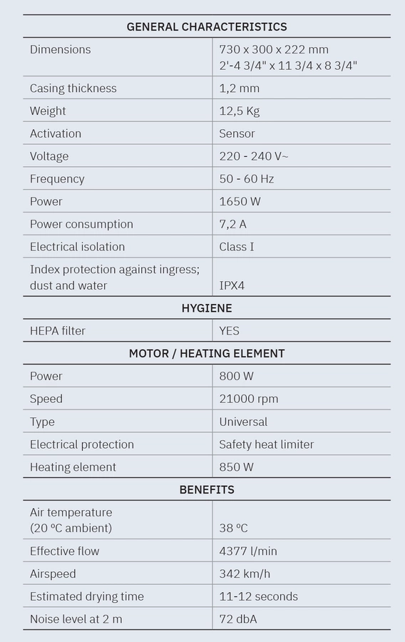 V-JET INOX bezdotykowa suszarka do rąk, 220-240V, 1650W, 300x730x222mm, stal nierdzewna mat