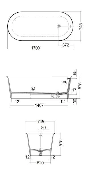 - Wymiary: 170 x 74,5 x 57,5 cm