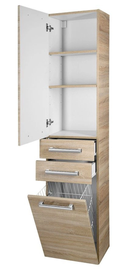VEGA słupek wysoki z koszem na bieliznę 40x184x31cm, dąb platin