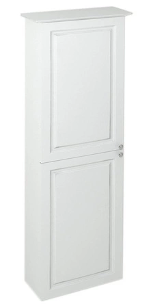 Szafki VIOLETA w stylu VINTAGE z frezowanymi frontami w kolorze biały półpołysk, uzupełnione uchwytem z kryształem SWAROVSKI doskonale podkreślą wyjątkową atmosferę twojego salonu kąpielowego.