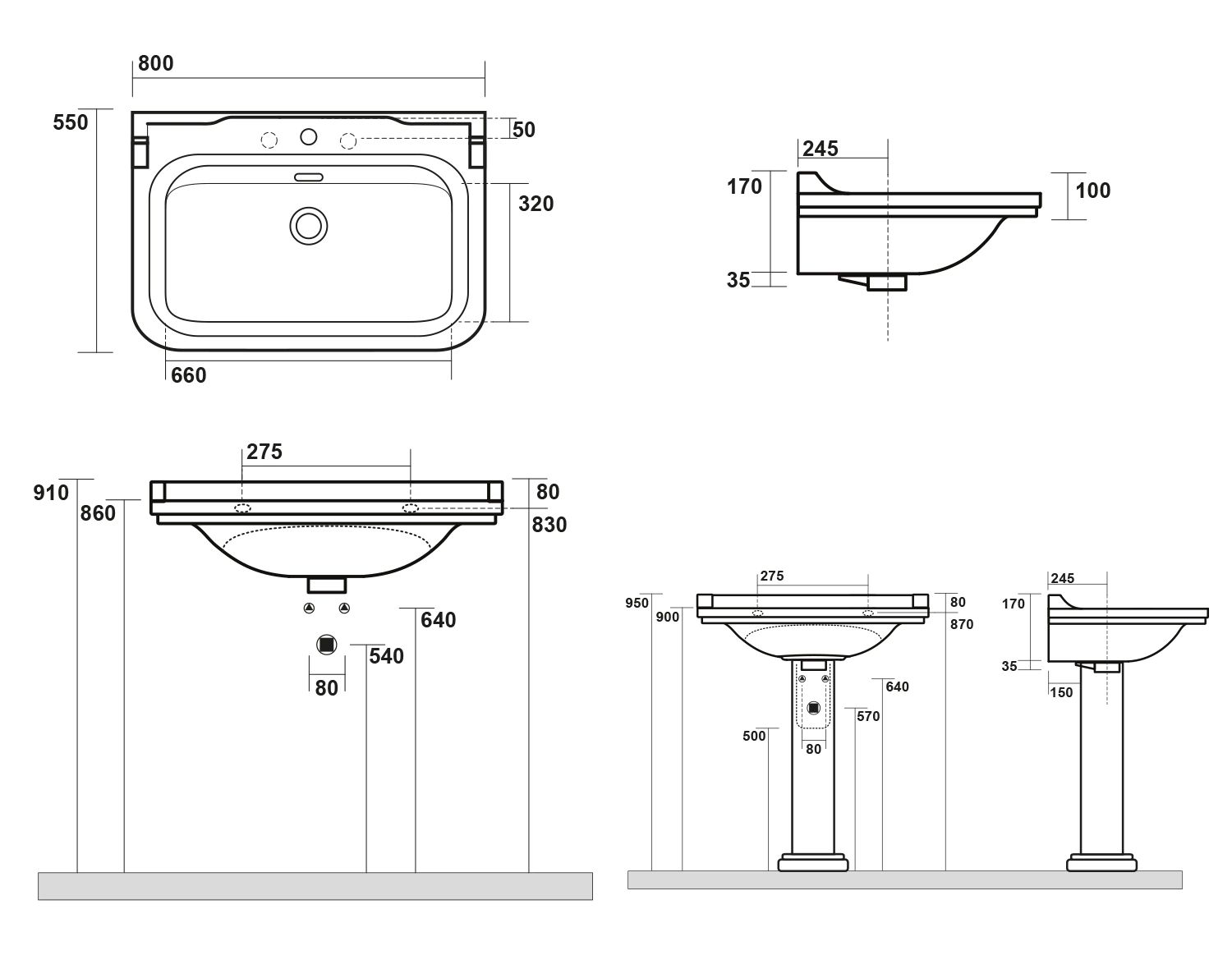 WALDORF umywalka ceramiczna 80x55cm, z 3 otworami na baterię, biały