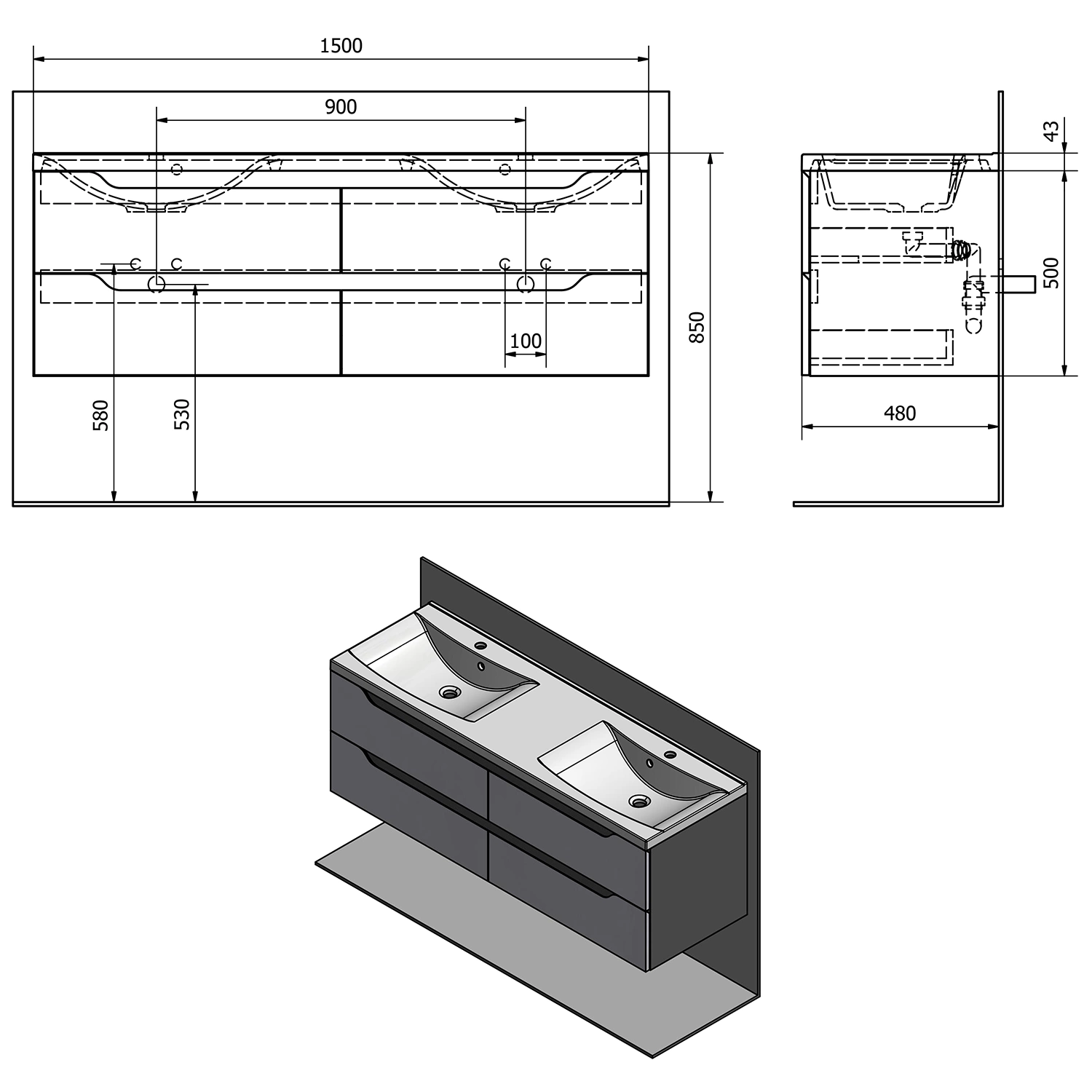 WAVE 150 zestaw łazienkowy, biała/dąb srebrnyr
