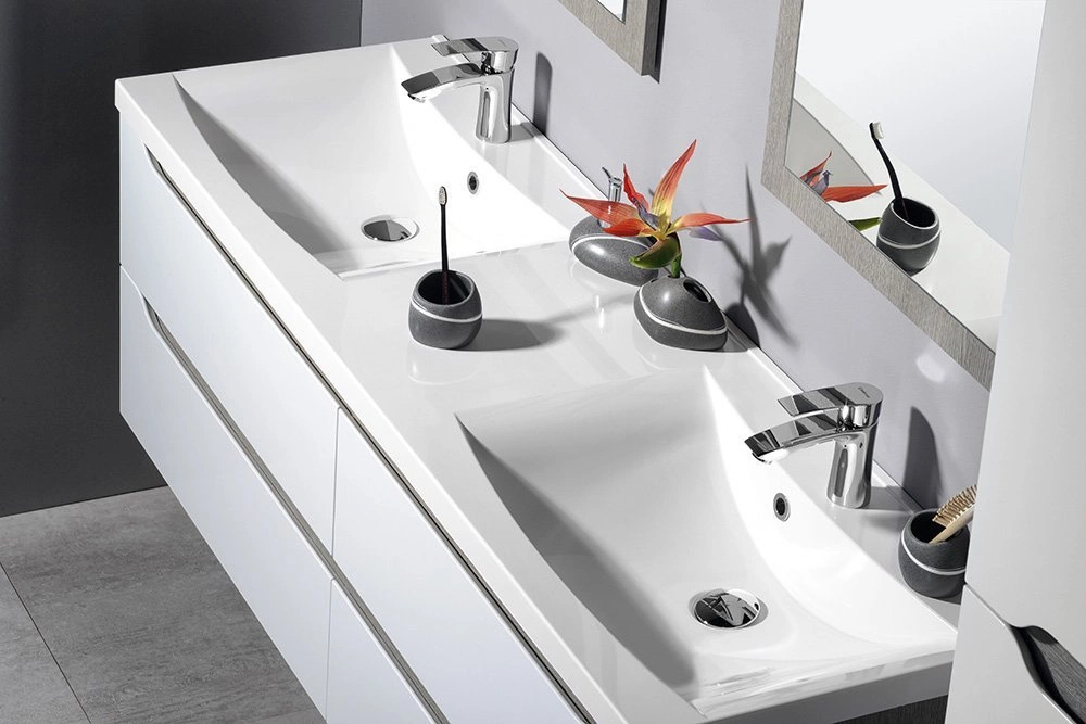 Seria mebli łazienkowych WAVE wyróżnia się ponadczasową elegancją. Elementem jednoczącym tej serii jest fala na frontach mebli, ktora pełni funkcję estetyczną i zarazem umożliwia wygodne otwieranie. Designu szafki odpowiada wyrafinowany kształt umywalki kompozytowej LUCIOLA. Szafki umywalkowe WAVE oferujemy w sześciu różnych szerokościach, także pod umywalkę podwójną. Dodatkowe wysokie słupki harmonijnie uzupełniają całość. W ofeercie znajduje się także szafka z blatem - patrz seria Kompozycja. Zgodnie z wyobraźnią możesz postawić na blacie jakąkolwiek umywalkę nablatową, którą wybierzesz z naszej bogatej oferty, tak samo jak i blat  występuje w kilku rożnych dekorach.