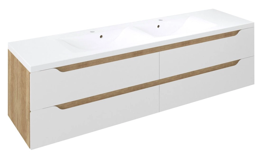 Seria mebli łazienkowych WAVE wyróżnia się ponadczasową elegancją. Elementem jednoczącym tej serii jest fala na frontach mebli, ktora pełni funkcję estetyczną i zarazem umożliwia wygodne otwieranie. Designu szafki odpowiada wyrafinowany kształt umywalki kompozytowej LUCIOLA. Szafki umywalkowe WAVE oferujemy w sześciu różnych szerokościach, także pod umywalkę podwójną. Dodatkowe wysokie słupki harmonijnie uzupełniają całość. W ofeercie znajduje się także szafka z blatem - patrz seria Kompozycja. Zgodnie z wyobraźnią możesz postawić na blacie jakąkolwiek umywalkę nablatową, którą wybierzesz z naszej bogatej oferty, tak samo jak i blat występuje w kilku rożnych dekorach.
