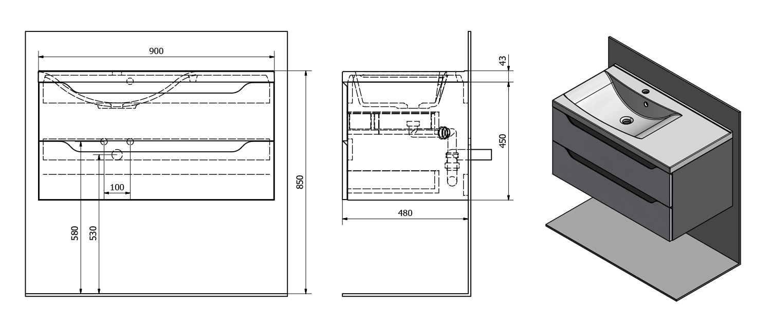 WAVE 90 zestaw łazienkowy, lewa, biała/dąb Alabama