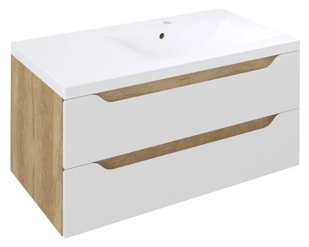 Seria mebli łazienkowych WAVE wyróżnia się ponadczasową elegancją. Elementem jednoczącym tej serii jest fala na frontach mebli, ktora pełni funkcję estetyczną i zarazem umożliwia wygodne otwieranie. Designu szafki odpowiada wyrafinowany kształt umywalki kompozytowej LUCIOLA. Szafki umywalkowe WAVE oferujemy w sześciu różnych szerokościach, także pod umywalkę podwójną. Dodatkowe wysokie słupki harmonijnie uzupełniają całość. W ofeercie znajduje się także szafka z blatem - patrz seria Kompozycja. Zgodnie z wyobraźnią możesz postawić na blacie jakąkolwiek umywalkę nablatową, którą wybierzesz z naszej bogatej oferty, tak samo jak i blat występuje w kilku rożnych dekorach.