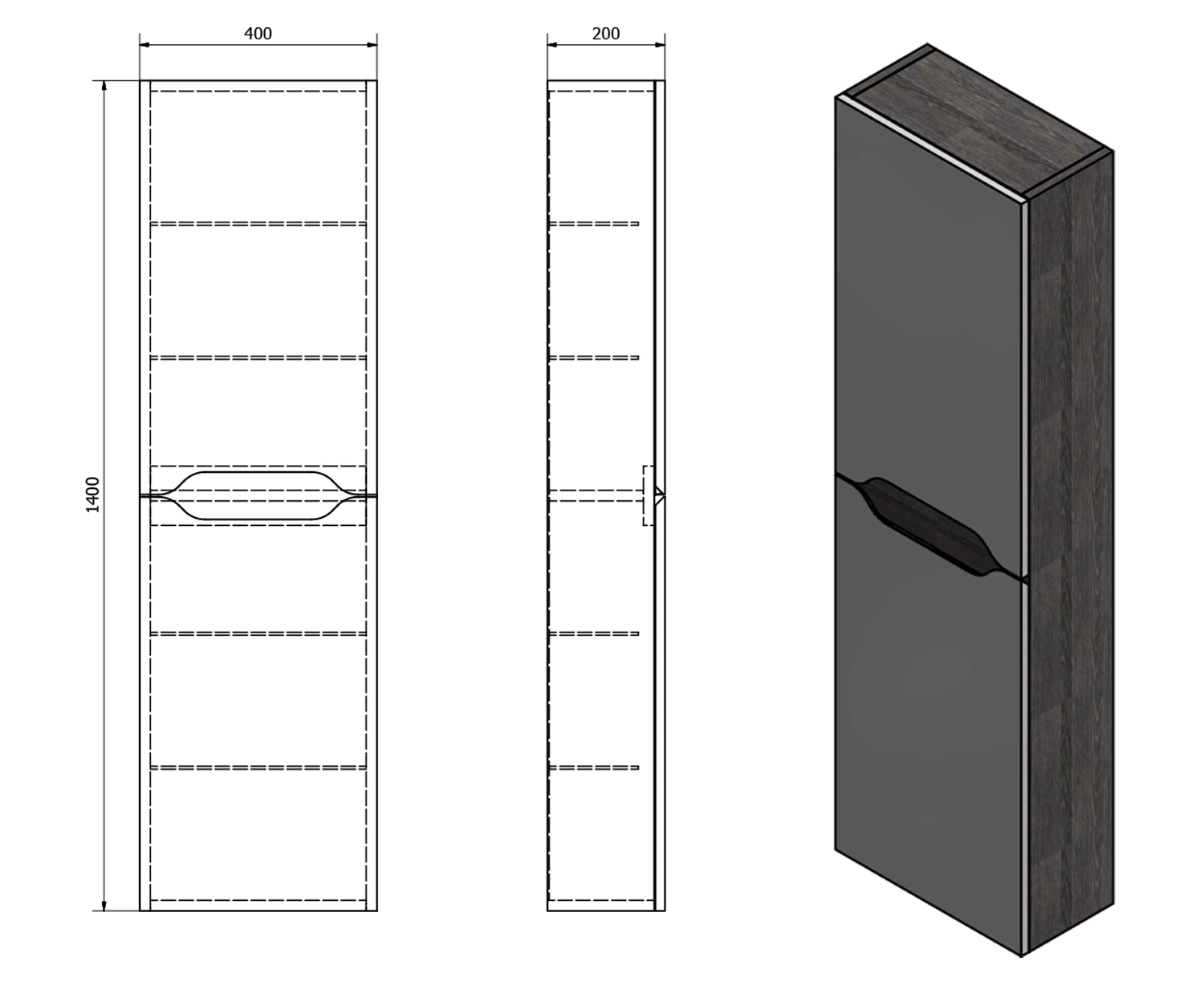 WAVE szafka wysoka 40x140x20cm, biała/dąb srebrny