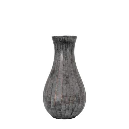 Dzięki organicznemu, płynnemu kształtowi i ciemnoszarym liniowym wzorom ten wazon jest elegancki i wyrafinowany. Umieść go wraz z dopasowanymi wazonami, aby uzyskać najbardziej stylowy wygląd.