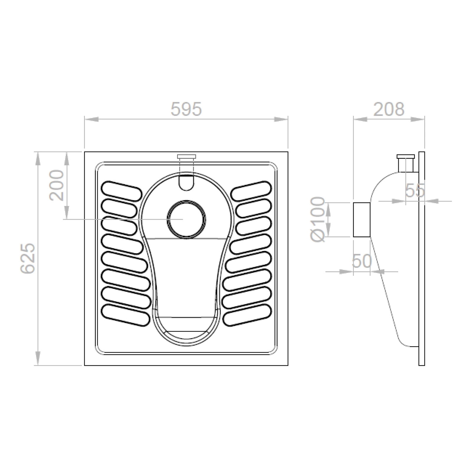 WC turecki 59,5x62,5cm, stal nierdzewna polerowana