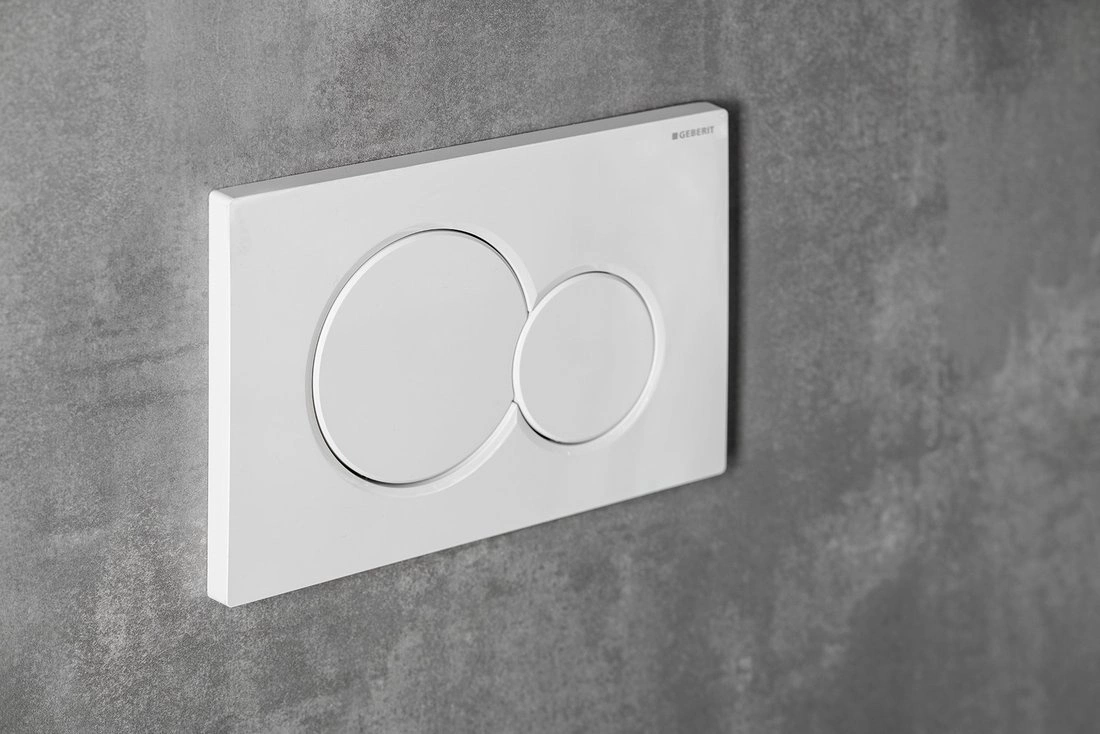 WC wisząca Nera z podtynkową spłuczką z płyt gipsowo-kartonowych i przyciskiem Geberit, biała