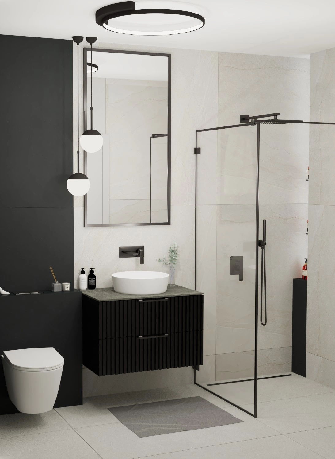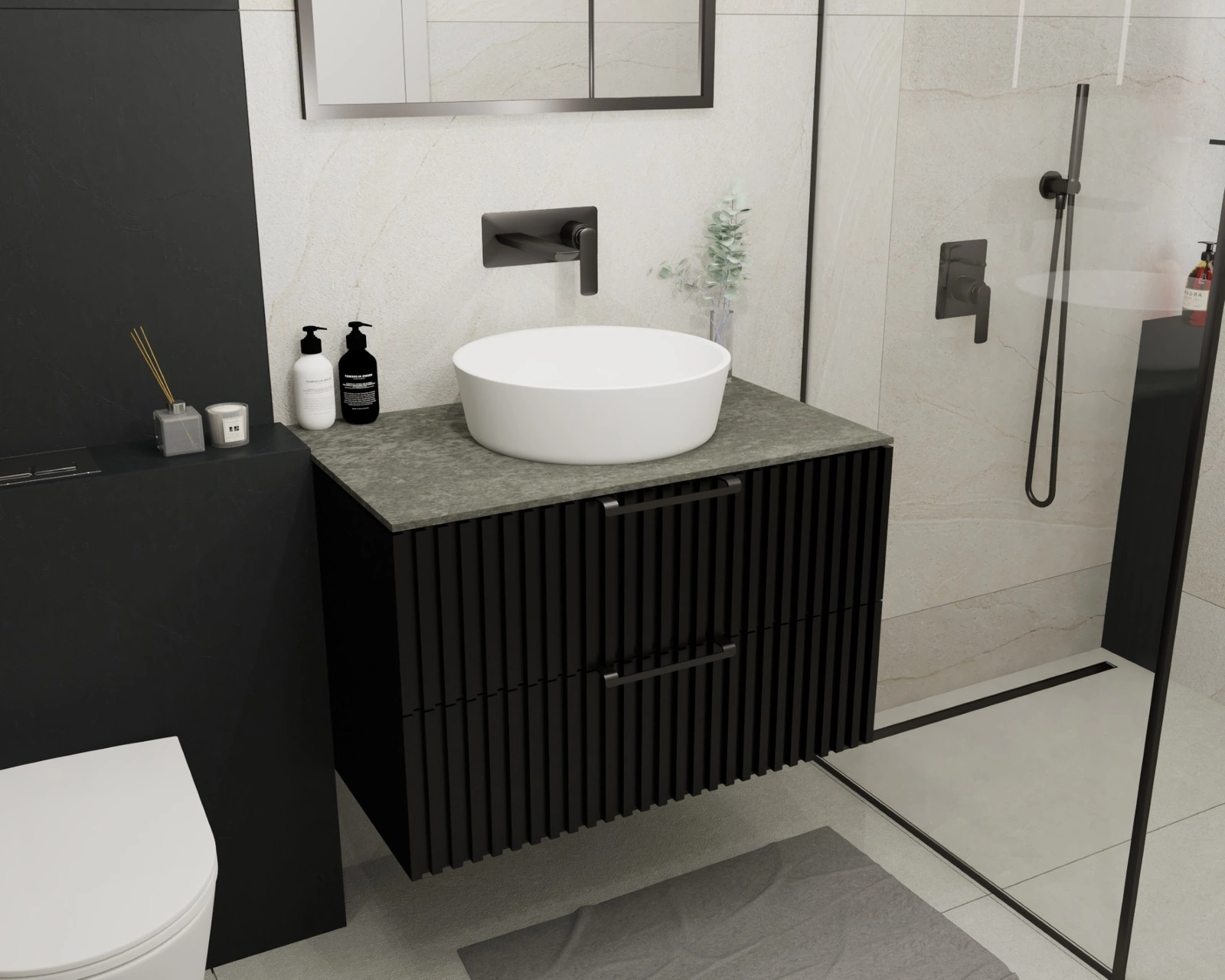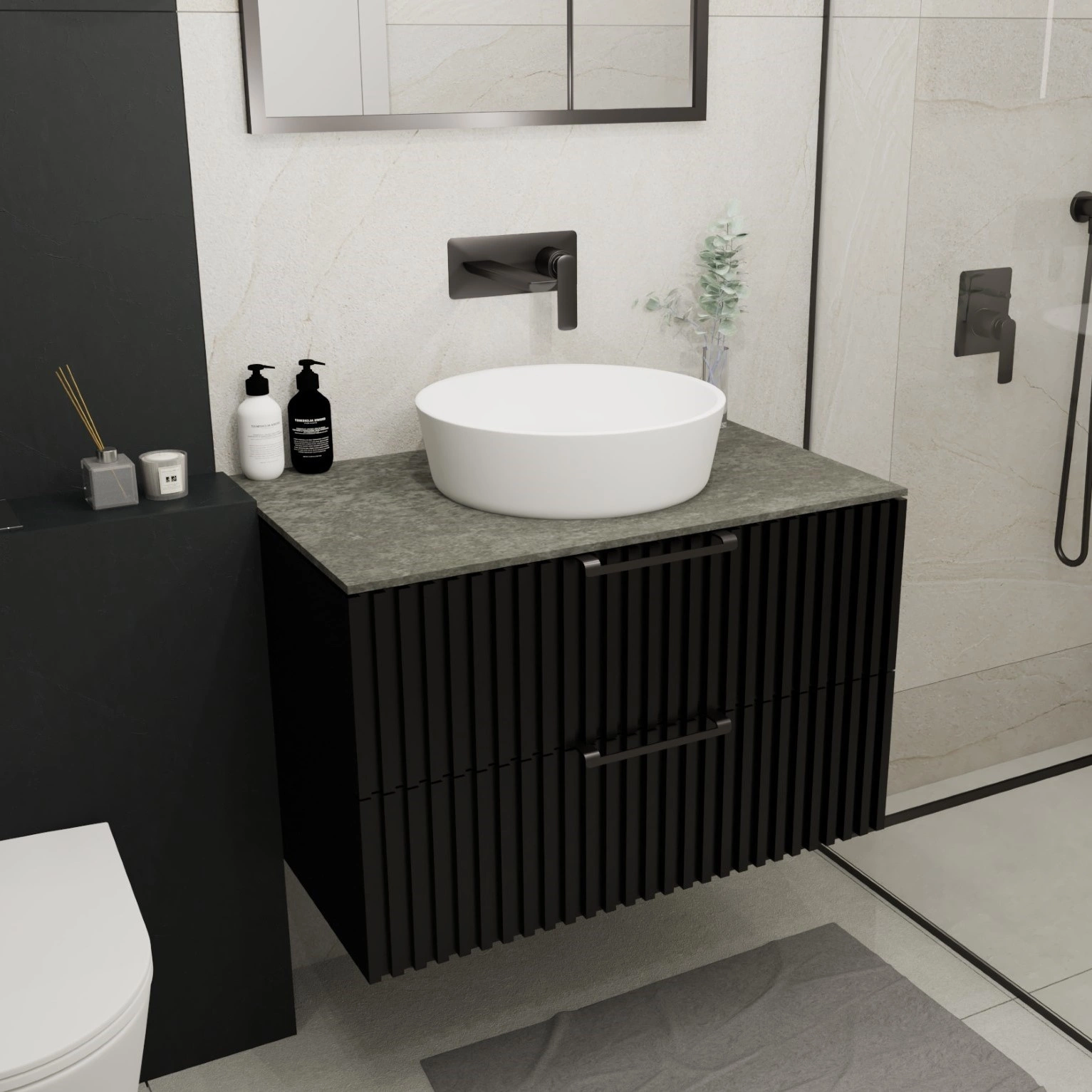- Blat Graffite z wyciętym otworem na syfon umywalkowy