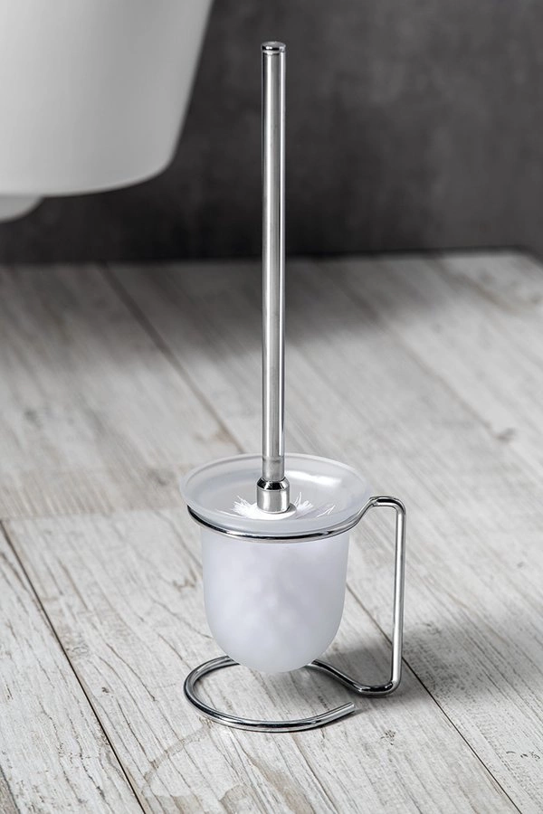 X-ROUND E szczotka do WC do postawienia, szkło mleczne, chrom