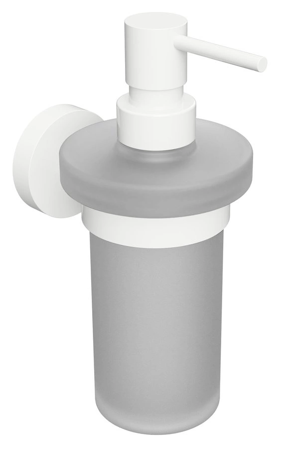 X-ROUND WHITE wiszący dozownik mydła 230ml, szkło mleczne, biały mat