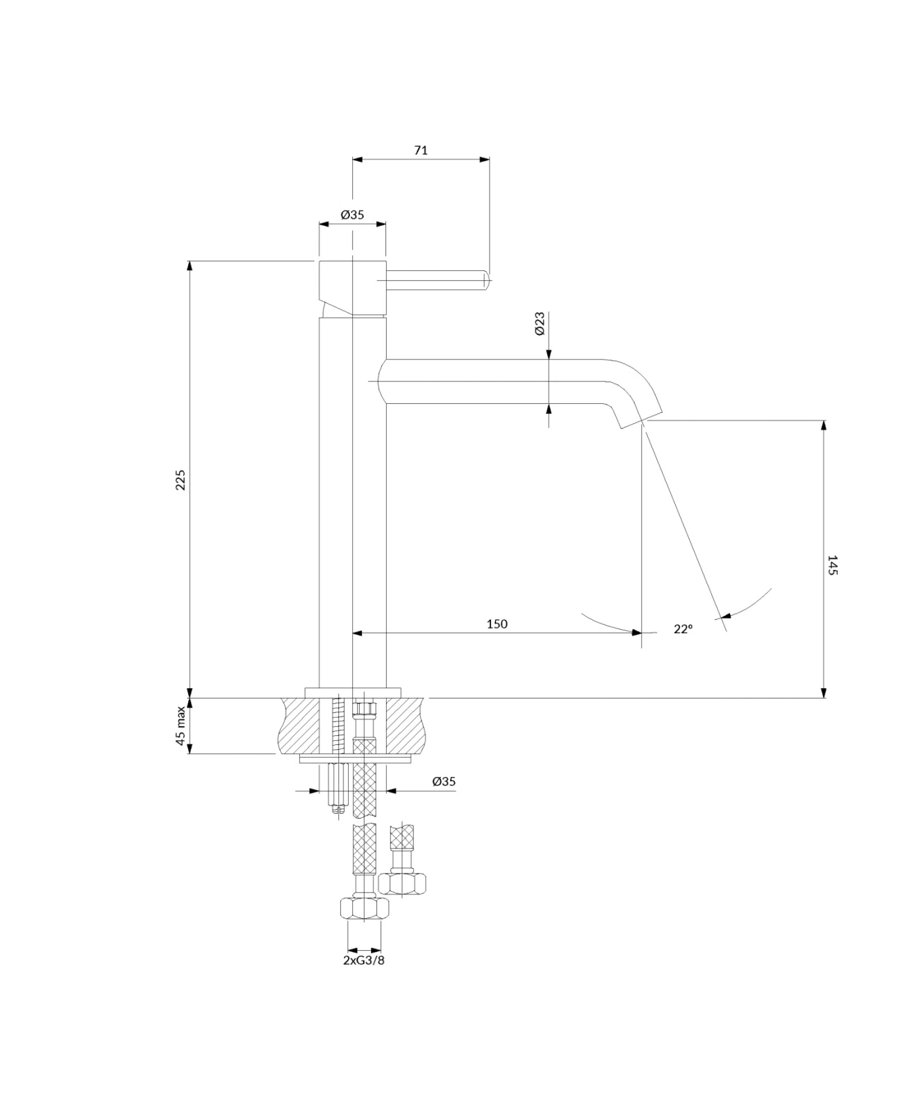Y | bateria umywalkowa, 23 cm (głowica 25 mm)