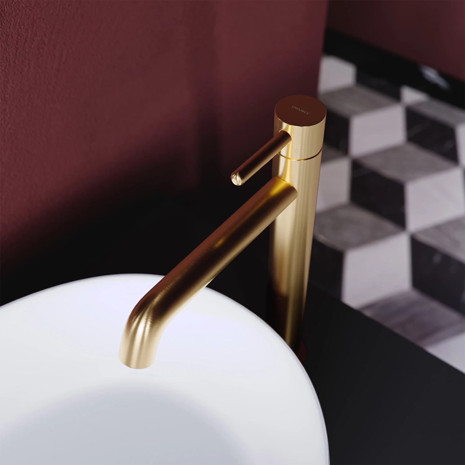 Y bateria umywalkowa wysoka, złoty szczotkowany