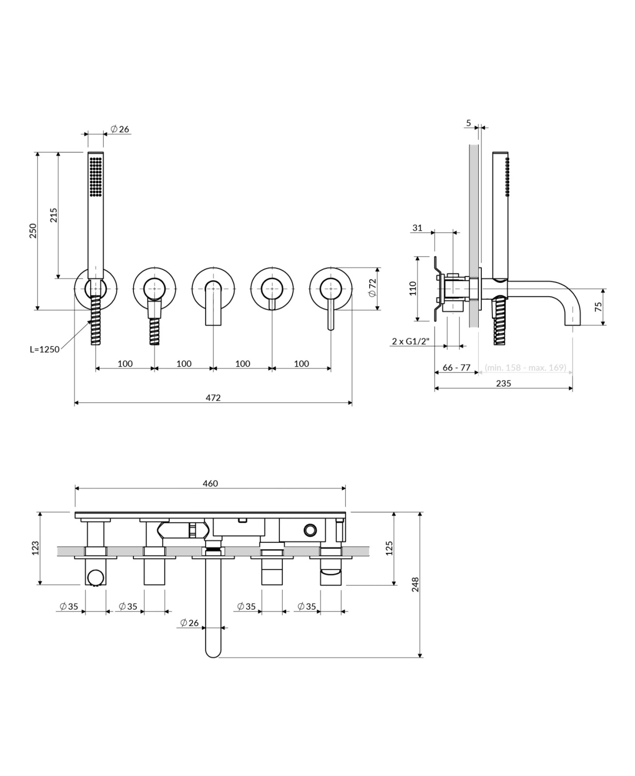 Y bateria wannowa 5-otworowa podtynkowa, chrom połysk