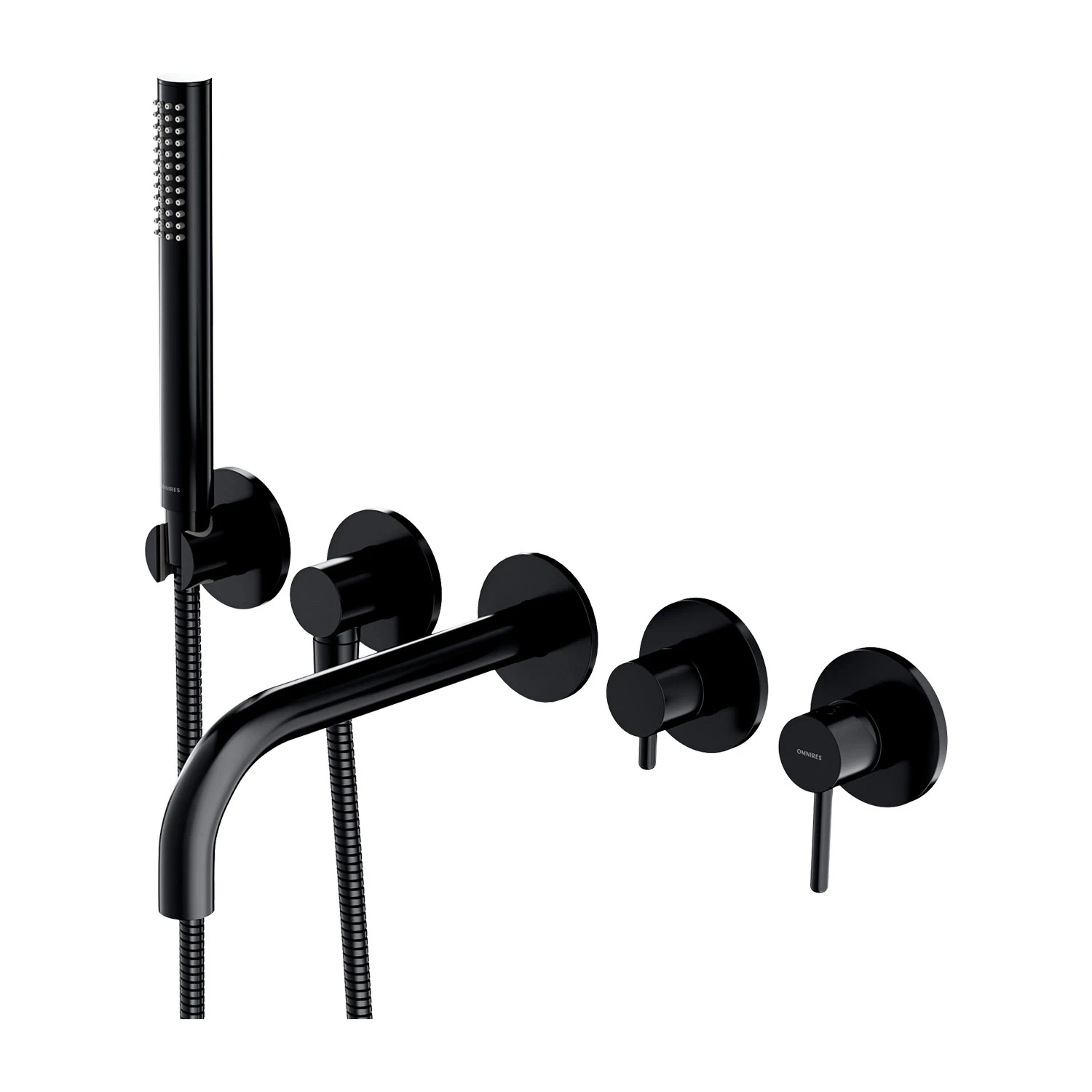 Y bateria wannowa 5-otworowa podtynkowa z długą wylewką, czarny półmat