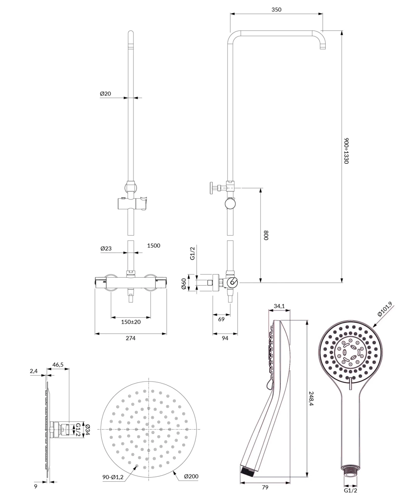 - regulowana wysokość, minimalna/maksymalna wysokość systemu: ~90 cm/~130 cm
