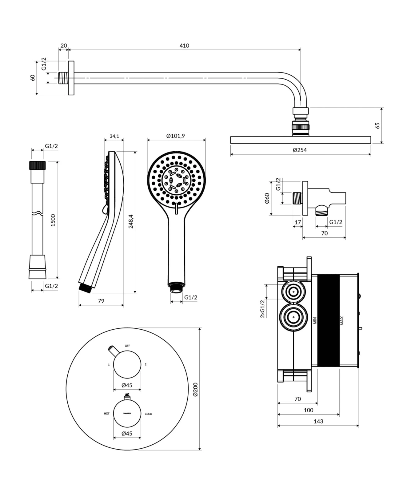 Y | termostatyczny system prysznicowy podtynkowy