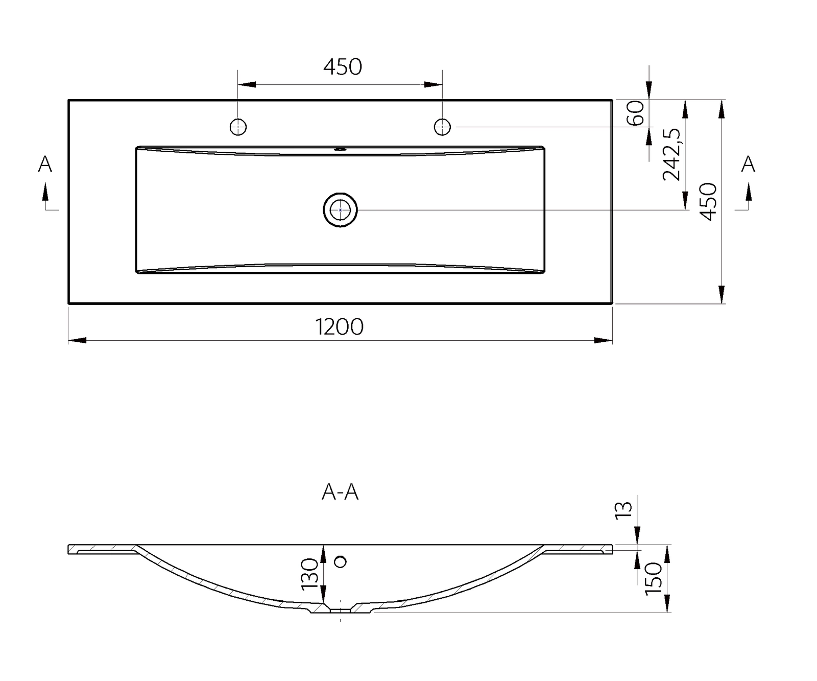 YUKON umywalka kompozytowa podwójna 120x45cm, 2biały