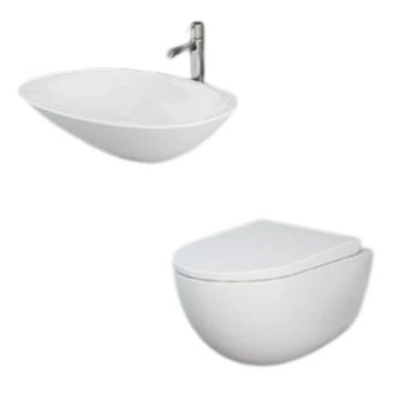 Zestaw DES Miska WC podwieszana z deską W/O i Umywalką Nablatową MORNING owalną 54x38 cm biały połysk
