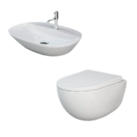 Zestaw DES Miska WC podwieszana z deską W/O i Umywalką Nablatową VARIANT owalną 60x42 cm biały połysk