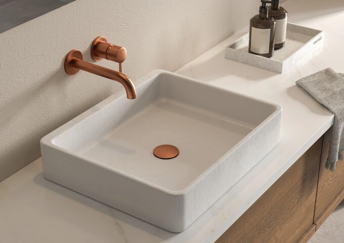 Zestaw elementów 180 mm zewnętrznych z wylewką podtynkowej baterii umywalkowej szczotkowana miedź pvd