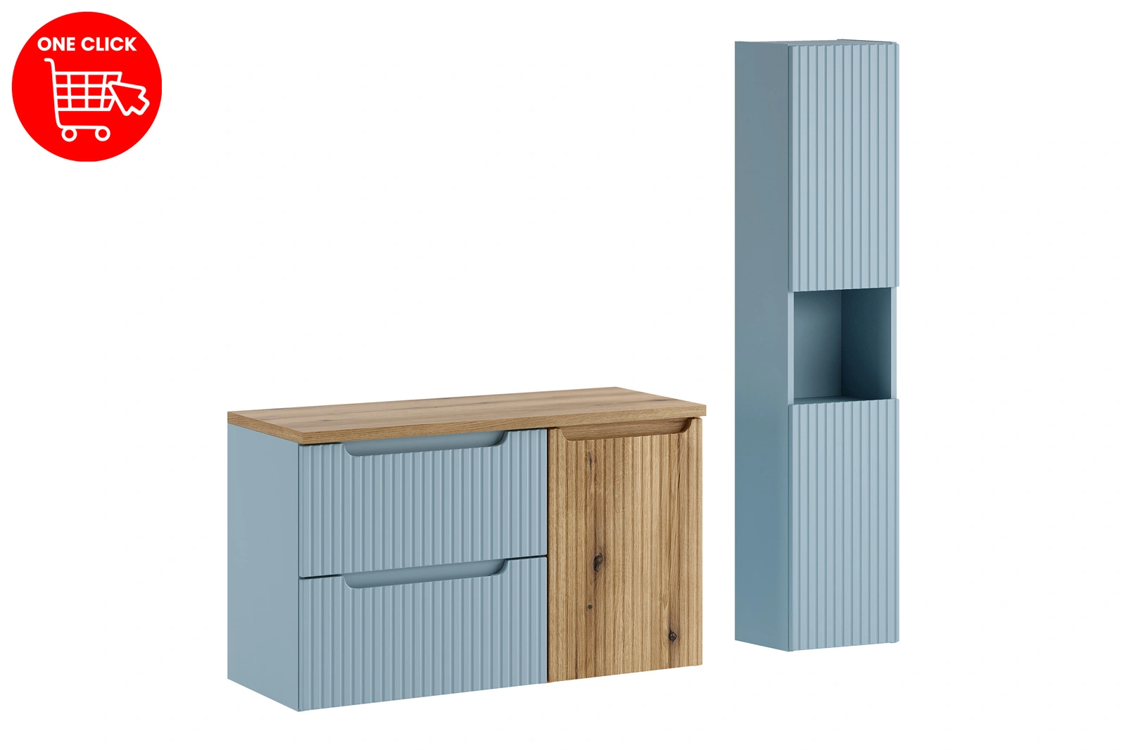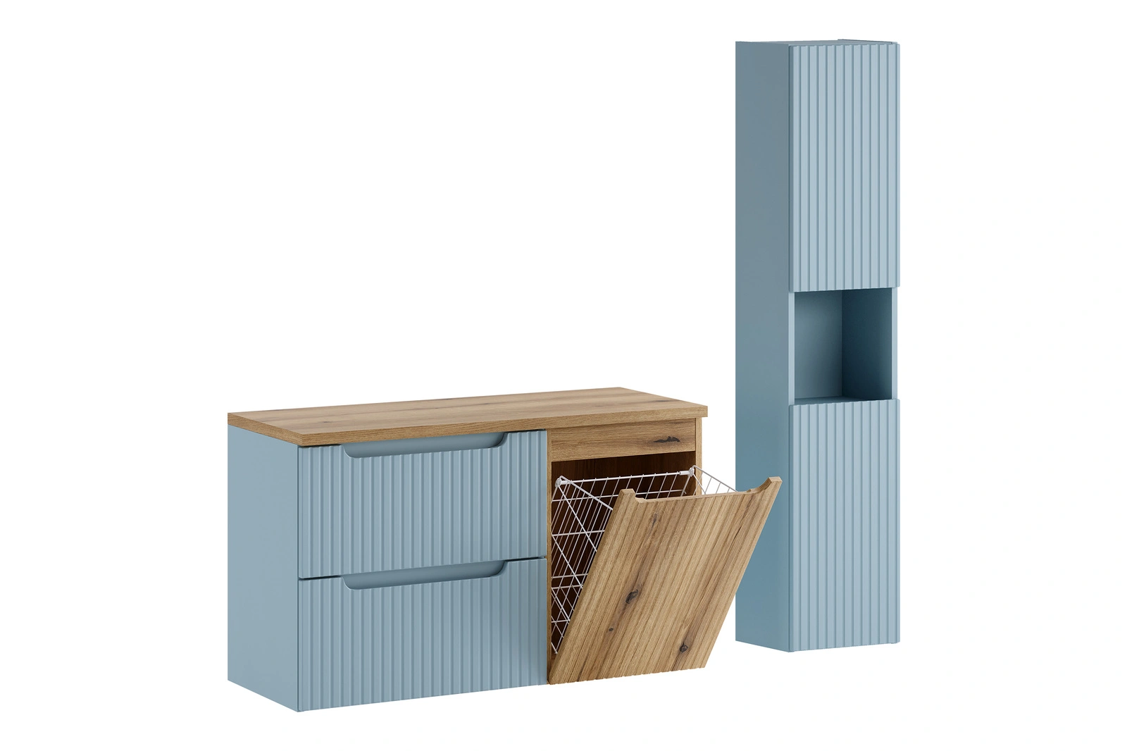 Zestaw meblowy 100cm z blatem, szafką z koszem na praniem i szafką wysoką