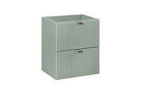 Całkowita szerokość zestawu wynosząca 140 cm oraz głębokość 40 cm sprawiają, że doskonale wpasuje się w każdą łazienkę, oferując optymalne wykorzystanie przestrzeni. Fronty wykonane w stylu Frezowanych Ryfli Pionowych zachwycają swoją teksturą, natomiast chromowane uchwyty w połysku dodają mu wyjątkowego blasku.