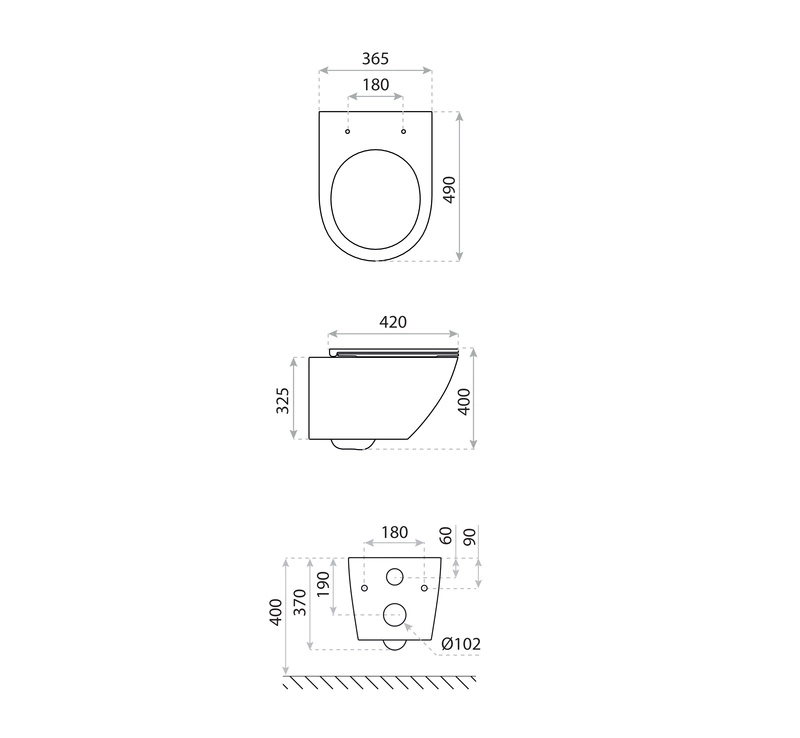 - Miska WC podwieszana, długość 49 cm, bez kołnierza, ukryte mocowania, deska WC slim wolnoopadająca
