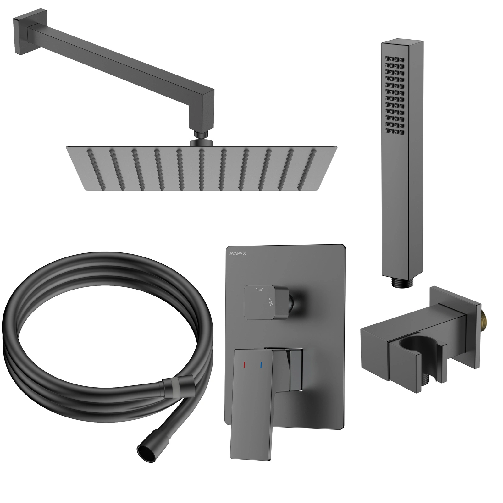 - Avapax VELLANO, Zestaw prysznicowy podtynkowy dwufunkcyjny (symbol produktu: ANVE121421) w kolorze gun metal mat.