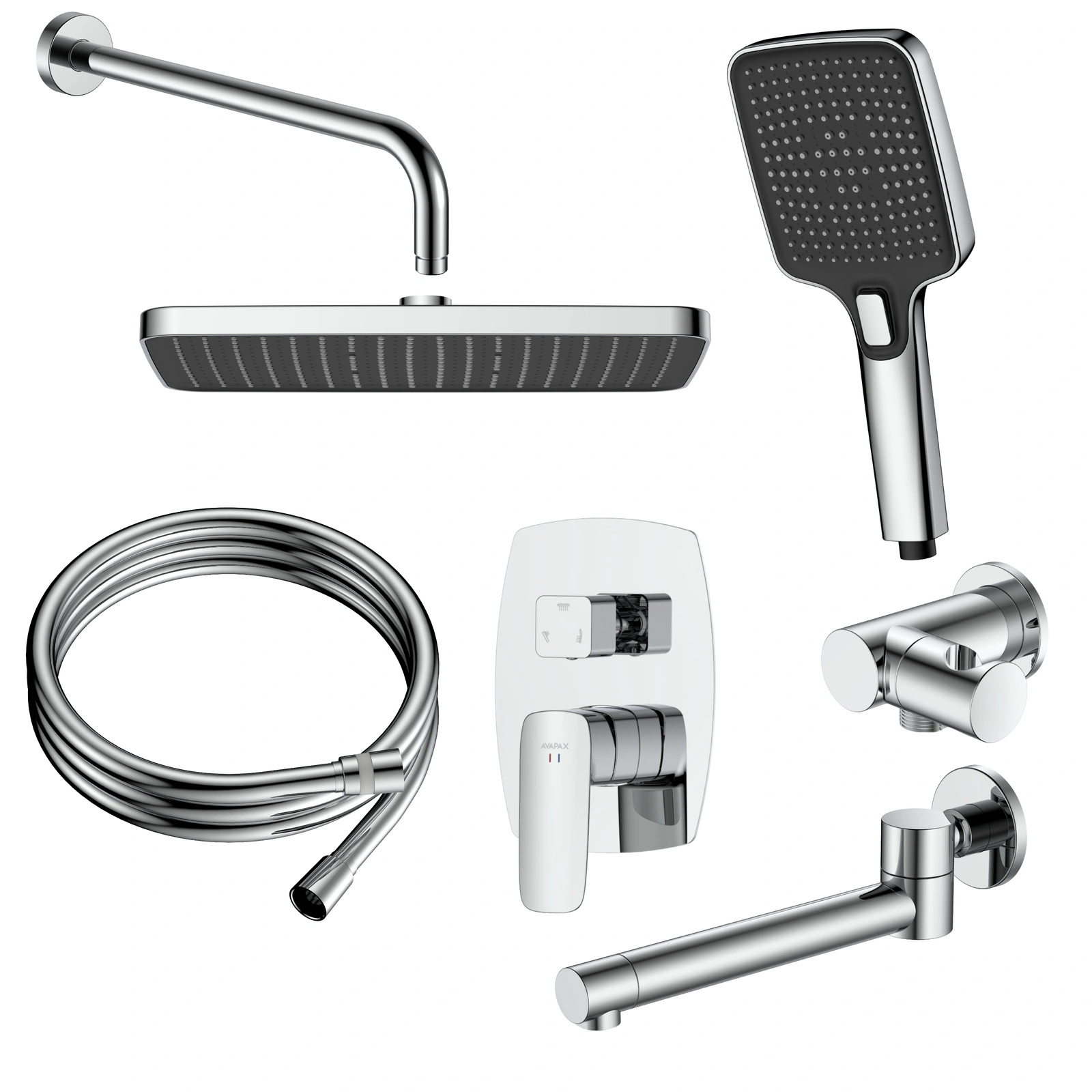• Avapax QANIX – Zestaw prysznicowy podtynkowy trzyfunkcyjny (symbol produktu: ANQA131131), chrom.