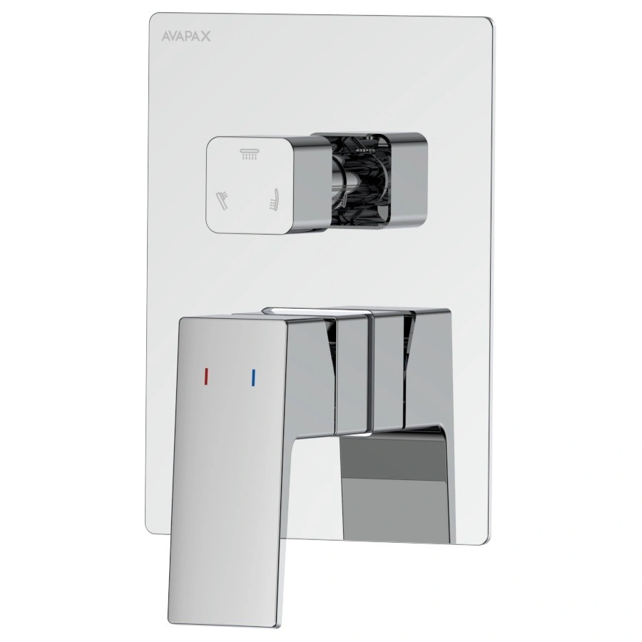 - Avapax VELLANO, Zestaw prysznicowy podtynkowy dwufunkcyjny (symbol produktu: ANVE131121) w kolorze chrom. Montaż podtynkowy oszczędza miejsce, trzy tryby dają wygodę, a mosiądz i płynna dźwignia zapewniają komfort i ciszę.
