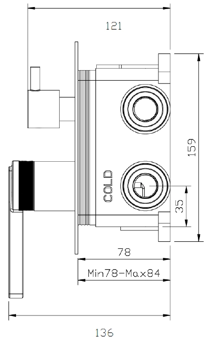 Bateria prysznicowo wannowa podtynkowa trzyfunkcyjna