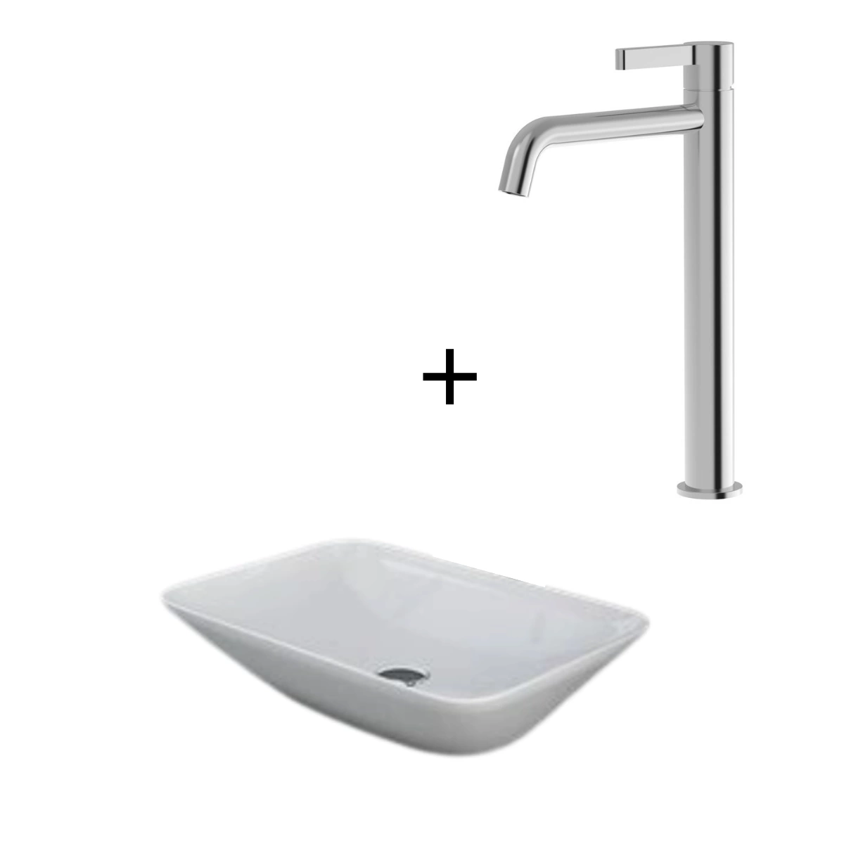 Zestaw VARIANT Umywalka nablat. prostokątna 55x36 cm BIAŁY POŁYSK + Bateria nablatowa wysoka ICONIC Chrom